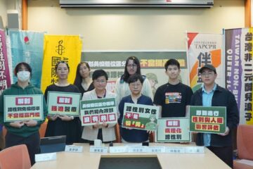 Organized by the Taiwan Alliance to Promote Civil Partnership Rights (TAPCPR) and attended by the Taiwan Association for Human Rights, Amnesty International Taiwan, Covenants Watch, Judicial Reform Association, Taiwan Non-binary Queer Sluts, the Intersex, Transgender and Transsexual People Care Association, Taiwan AIDS Foundation, and the Student Alliance for Gender Equality, TAPCPR Secretary General Chien Chih-Chieh (簡至潔) opened the press conference by explaining how multiple international human rights treaties and judicial rulings all deem the MOI’s 2008 executive order unconstitutional and in violation of fundamental human rights such as bodily autonomy.