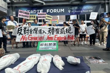 Taiwan has intensified foreign security cooperation amid rising military pressure from China. However, protesters contended that safeguarding the island should not depend on companies “entangled in genocide.”